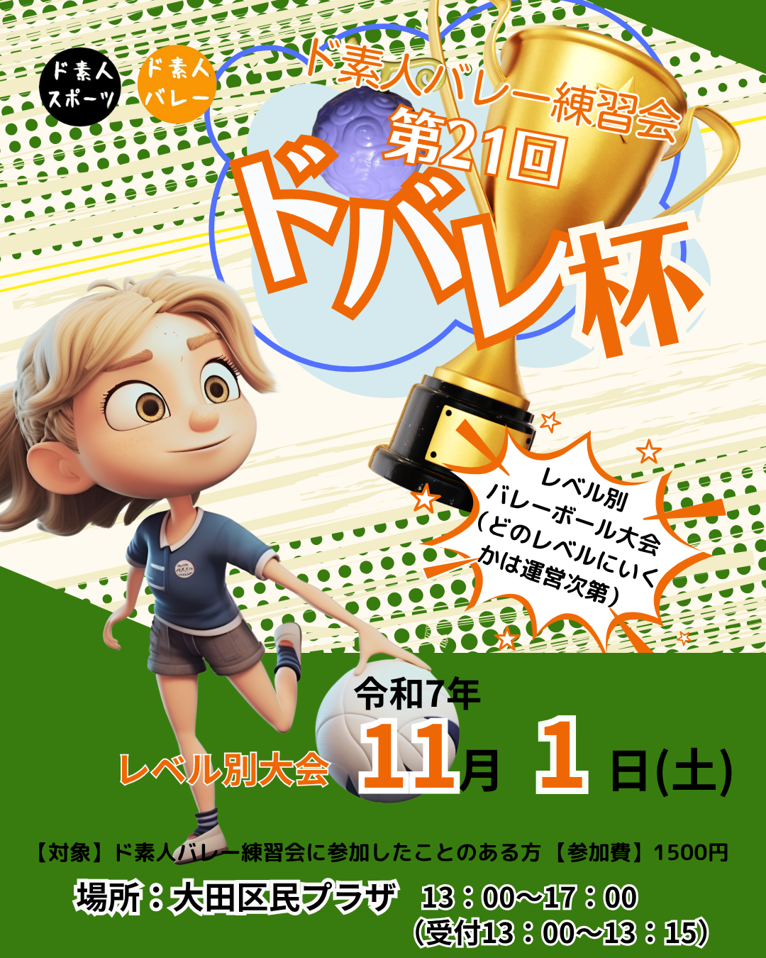 11/1(土) 13:00-17:00 第21回ドバレ杯(レベル別)@大田区民プラザ※遅刻早退不可