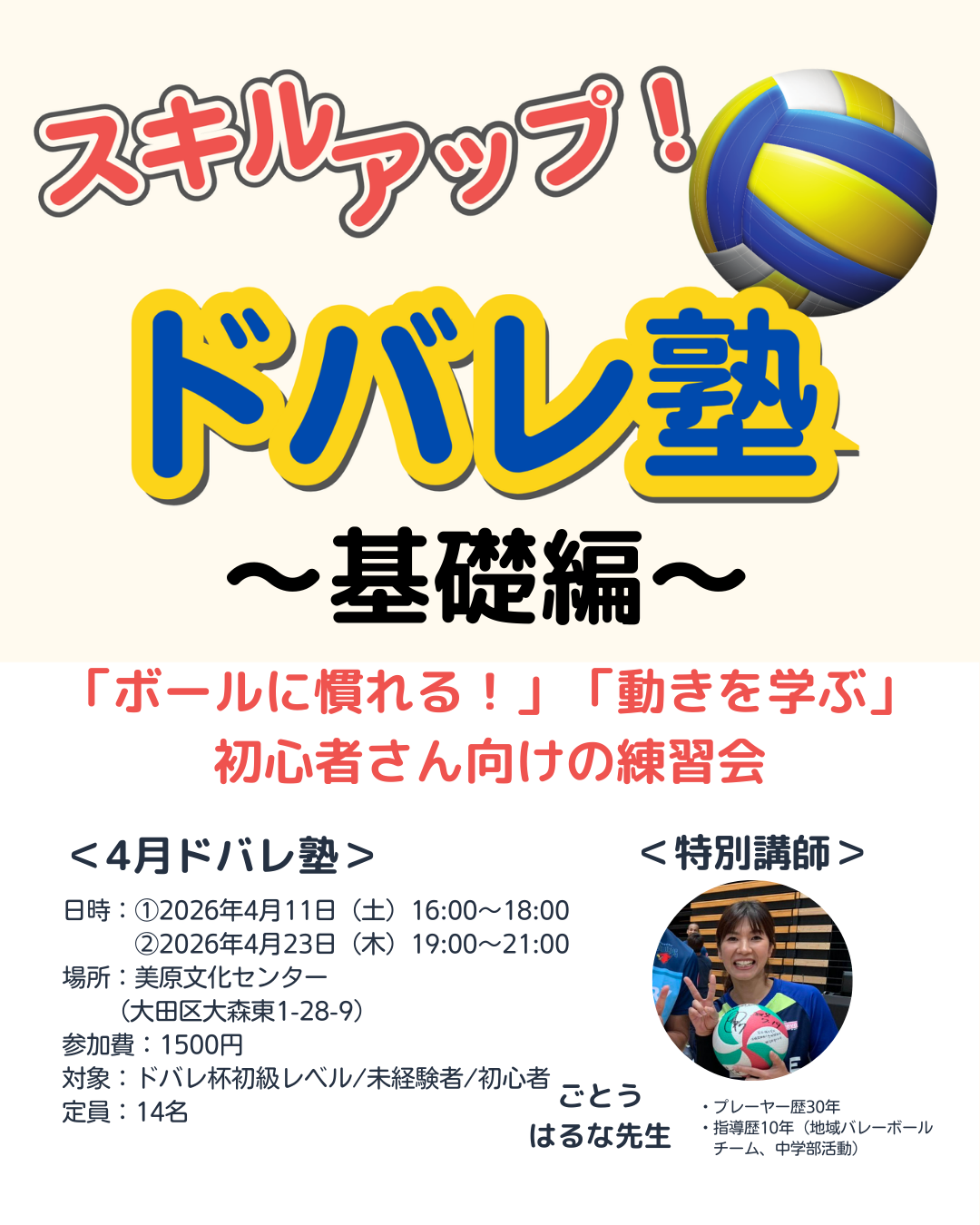 🏐ドバレ塾(バレーを教わる会・基礎/応用)